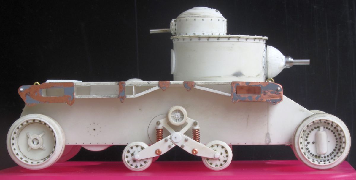 Я использовал подходящий к сроку хранения модельный силикон и снял кое-какие формы (маска с пушкой, полоска траков) – тренировался. Потом я полоску траков эту, понятное дело, поломал, сделал выводы и засунул всё в витрину от греха.