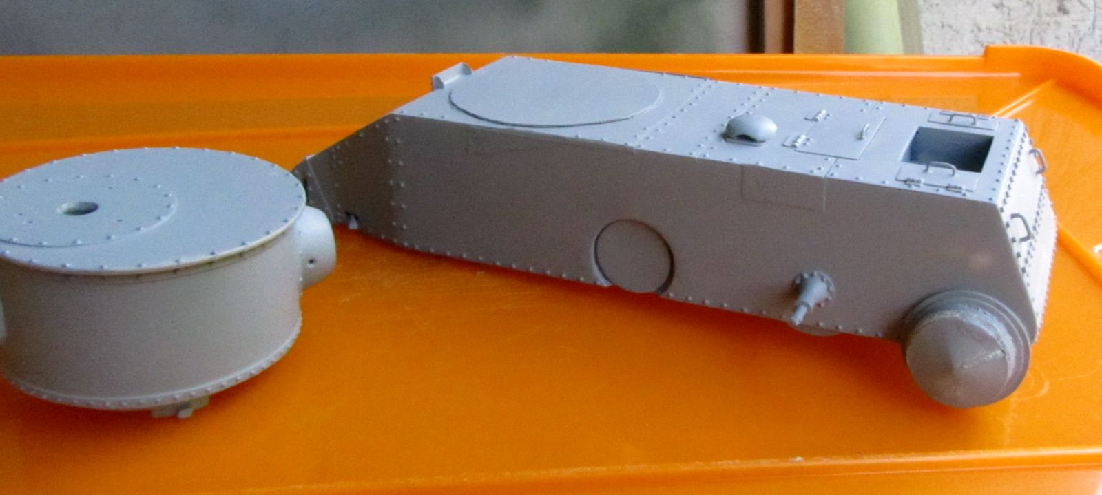 Я грунтую компоненты. С основной башней возникли серьёзные проблемы – на ней грунт пошел пузырями и стоками (слишком близко к распылителю поднёс).