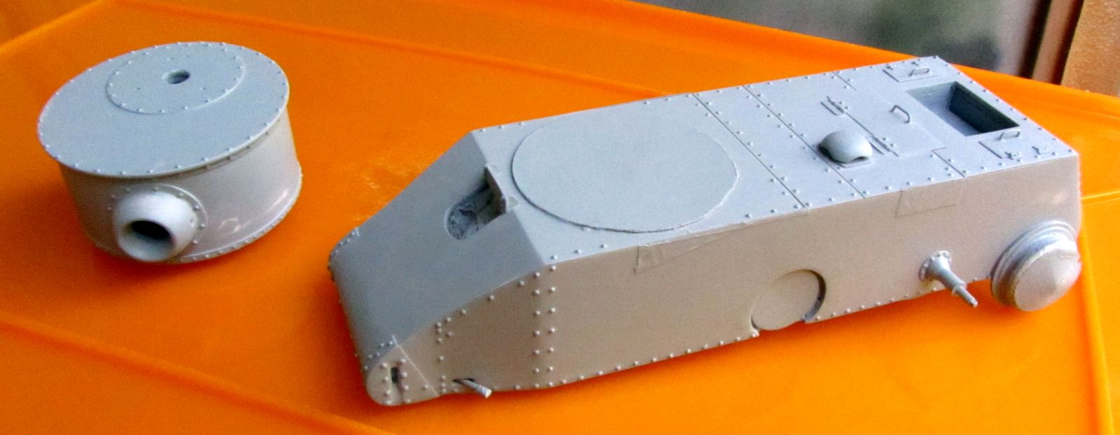 Работы подходят к концу, осталось лишь довтыкать заклёпки в нижний край башни и ручки выгнуть. И всё, останется только гусеница.