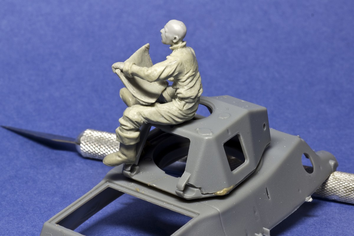 Потом я решил понять масштаб бедствия с переделкой башни и понял, что у меня косяк в месте, где должна быть верхняя створка люка мехвода. Тут поправлю и погружусь в башню и интерьер. Радует, что в башне, несмотря на отсутствие люка, почти ничего видно не будет. А я еще и досочку положу, чтобы тепло сидеть было