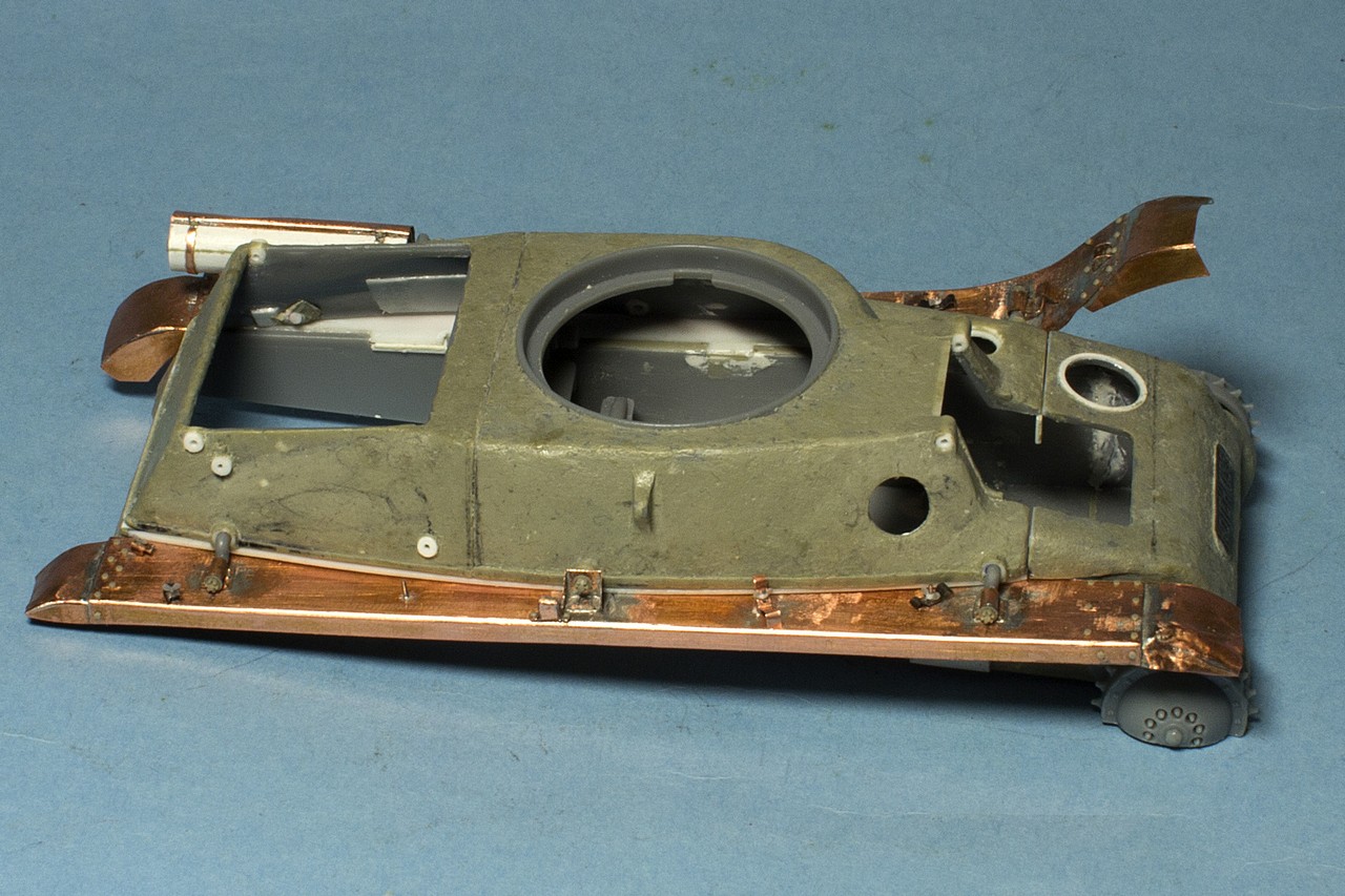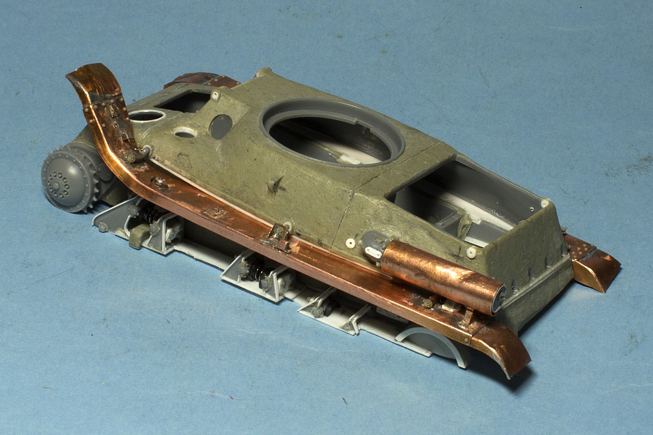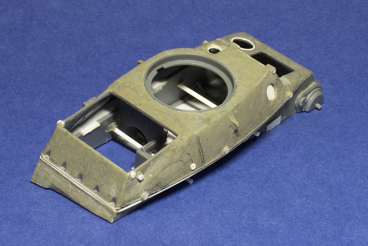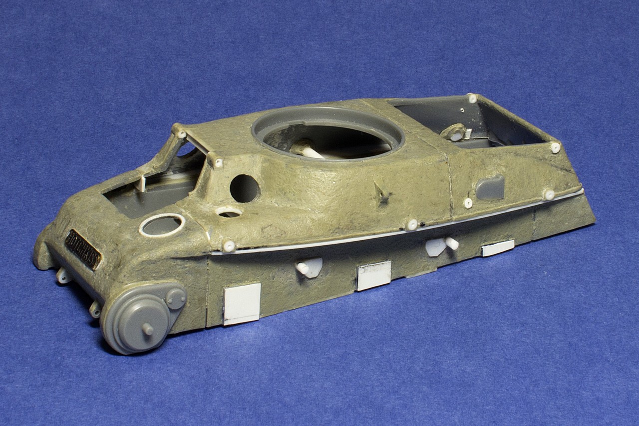 Надежды сделать точную модель из набора Бронко не очень много, но пытаюсь сделать похоже, хотя бы внешне. На сегодня справил явно видимые ошибки Бронко в расшивке частей корпуса, неверном расположении элементов и т.д. Подробно об этом пишу на панцере http://panzer35.ru/forum/58-14211-1#421637