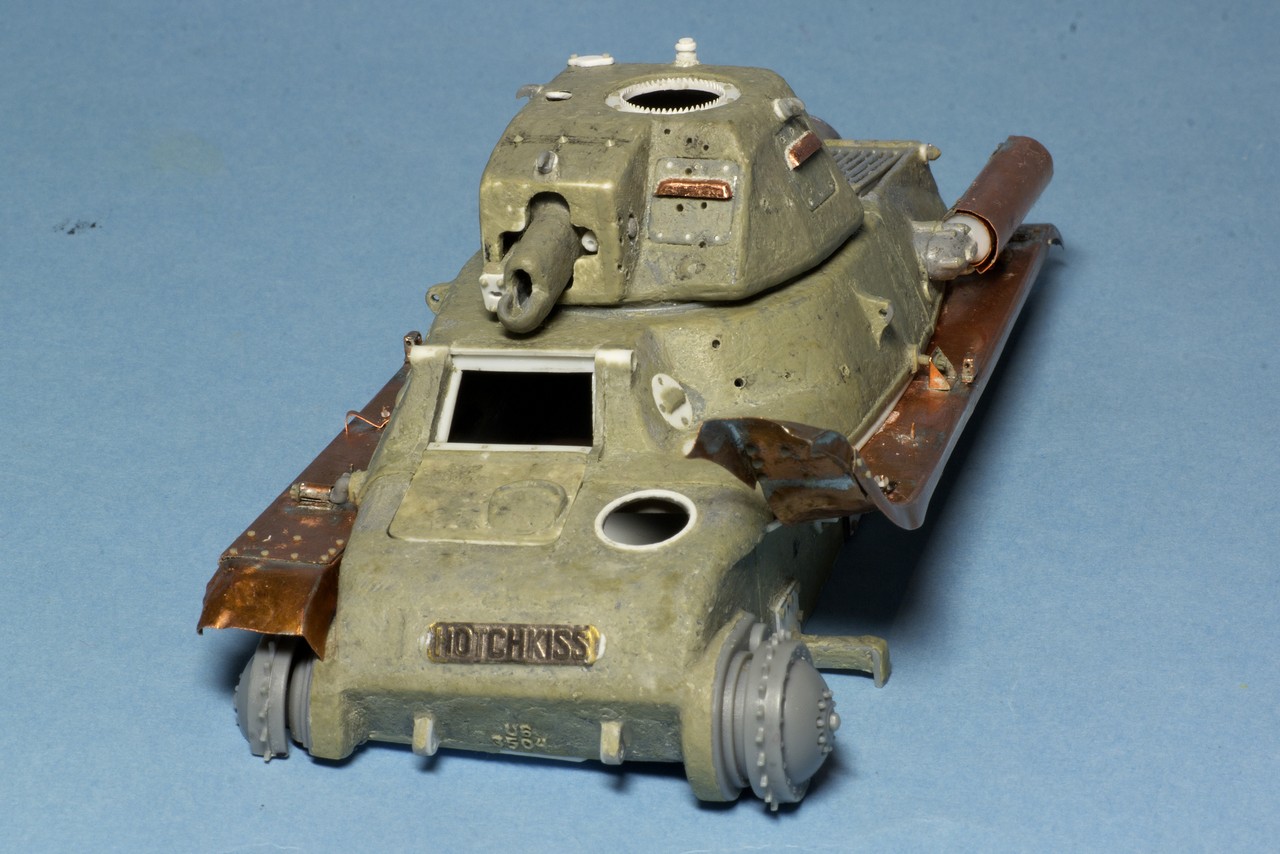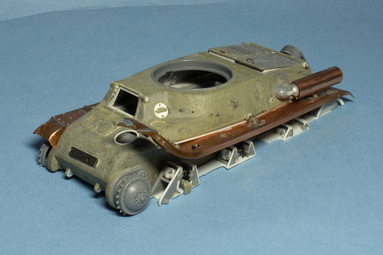 Продвинулся по Гочкису. К сожалению и Бронко и Эдуард (в части фототравления) воспроизводили в своих наборах некий Гочкис из параллельной вселенной. Но если из пластика Броко что-то можно пытаться выжать, то фототравление практически полностью идет в утиль при попытке сделать не то что копийно, но хотя бы похоже.