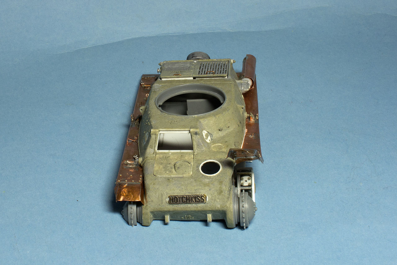 Продолжаю с Гочкисом. Вчера думал, что завершил экстерьер корпуса, но потом внимательно присмотрелся. Но об этом позже... Сейчас пациент выглядит так: