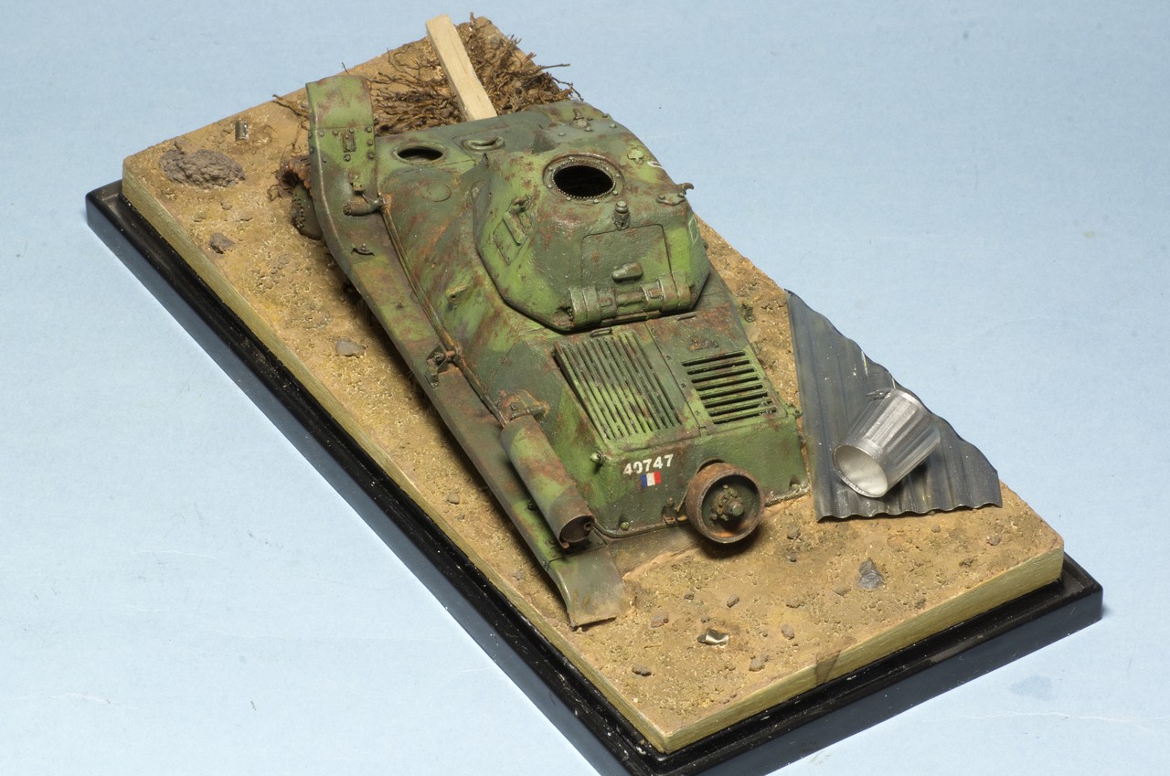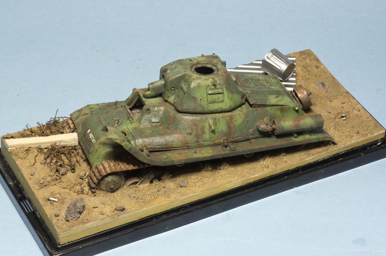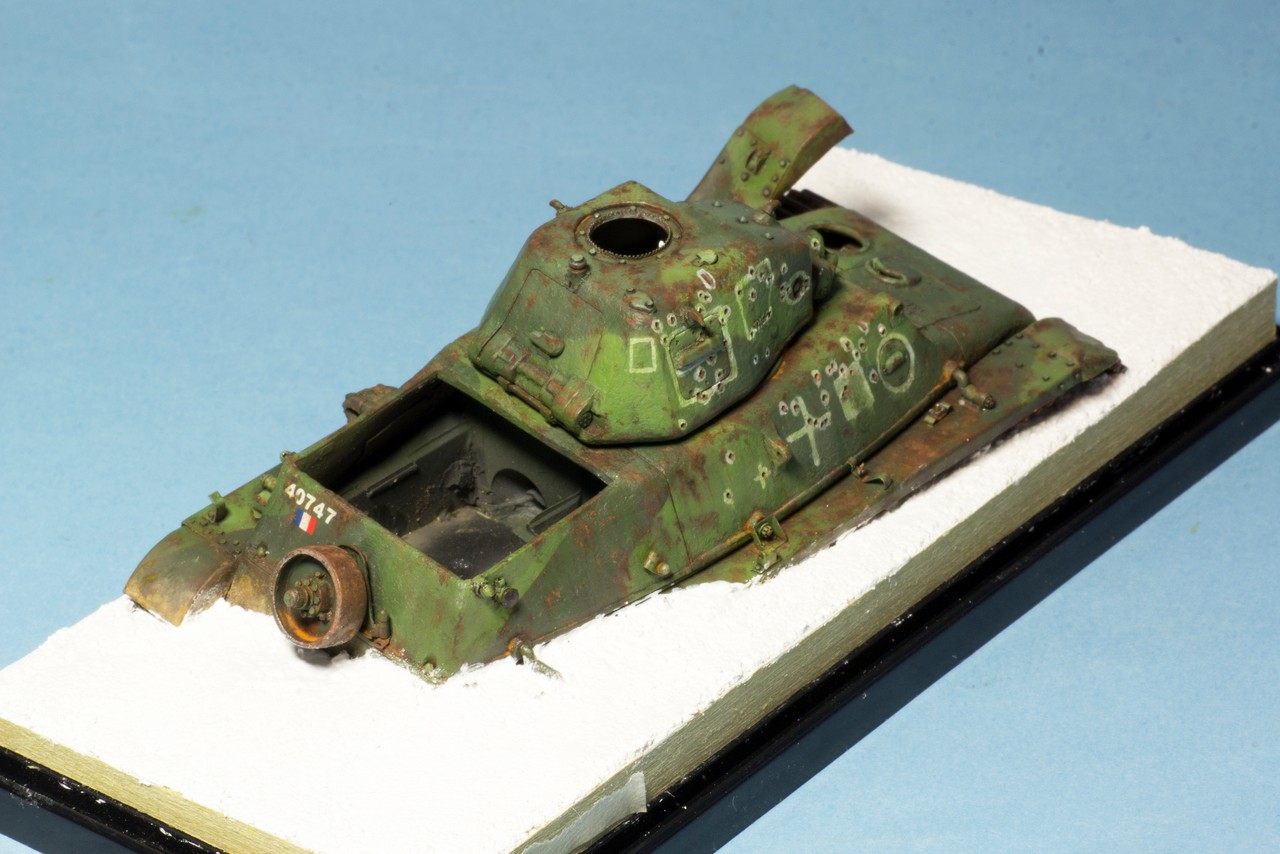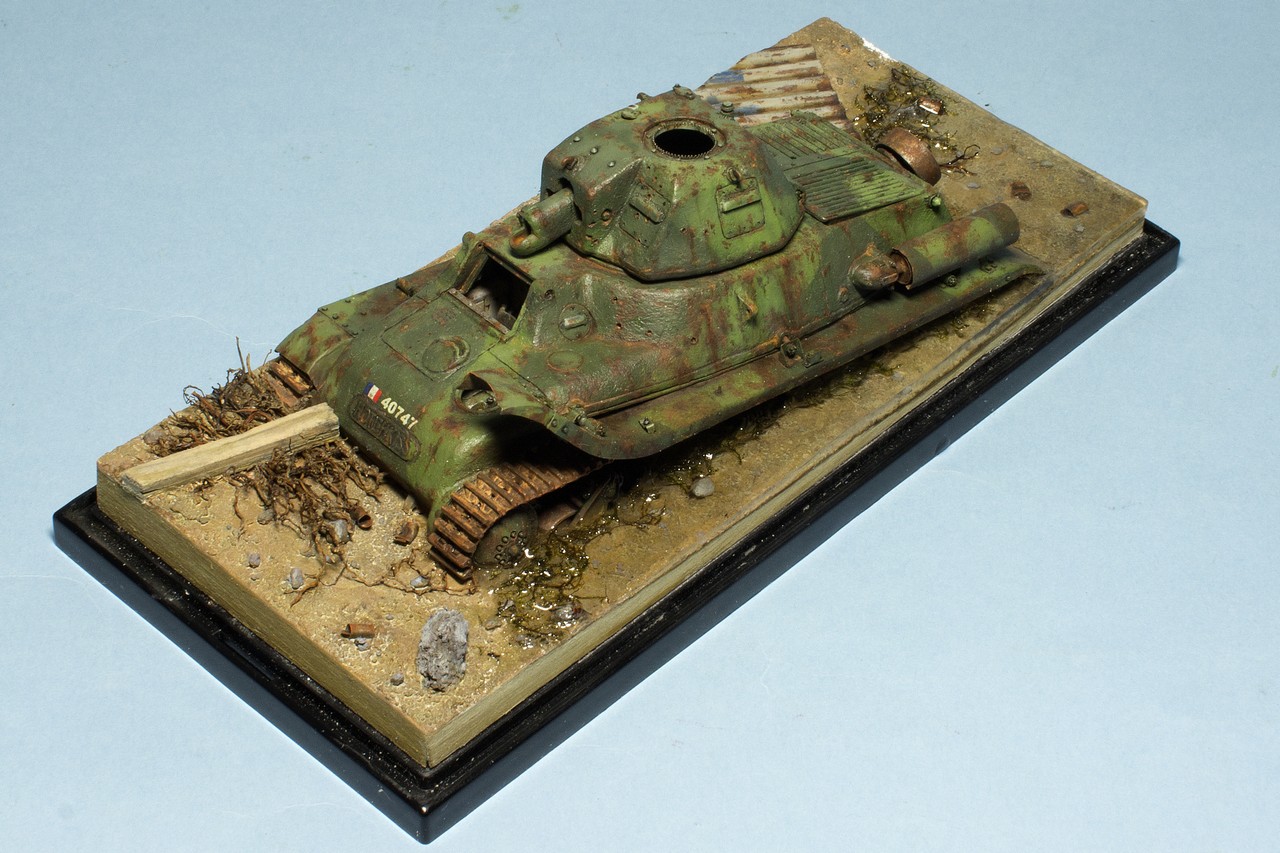 Собрал танчик из разрозненных частей. Окраска еще не закончена, я остановился после фильтров, масляных точек и прорисовки ржавчины маслом. По ржавчине у меня ощущение, что переборщил, но впереди еще грязи и пыль, может будет не так заметно. Но сначала нужно сделать мир вокруг модельки - т.е. подставку. Танк будет "утоплен" в подставке миллиметра на 3-4.