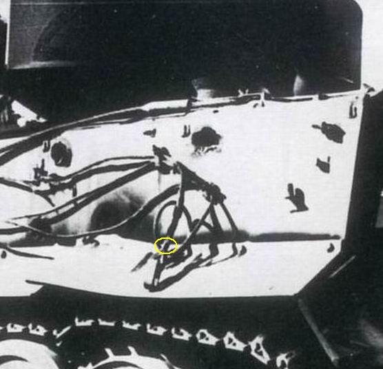3 Тигр 101. Тигр «средний», но такие тросы появились еще на «ранних» машинах. Именно фото одной из них (А02) приведено выше, но это никак не зима 42-43. Жесткая оплетка идет от самой петли.