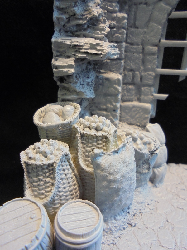 Запилил основание под "закрома родины".Загрунтовал перед прейдшейдингом.Смола понравилась,практически не возился с ней.Думаю,виньетка получится фактурная.Вот с масштабностью"сталинградских"фигурок засада.Слишком они мелковаты для хроносовского "ополченца".Хотел детишек на мешки посадить-смотрятся как маленькие гномики.Ну и "ополченец" в базовых цветах: