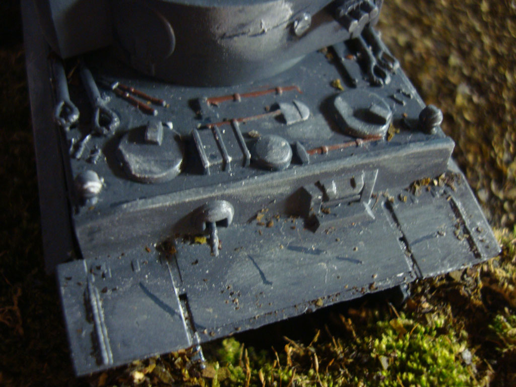 По поводу грязи,если честно,это отдельная темка.Пыль и стертость краски,сколы-это более присуще самому танку,к ходовой-то грязь нормально,и то в разумных количествах.Посмотри фотки техники,определись с временем года и что на "диораме" будет.Тогда и грязни.А барахло в основном возили немецкие экипажи,это в большенстве случаев ихняя привилегия.Так что не пересторайся.Удачи!
