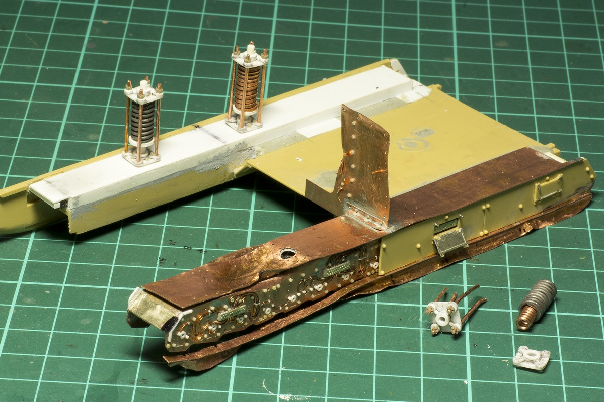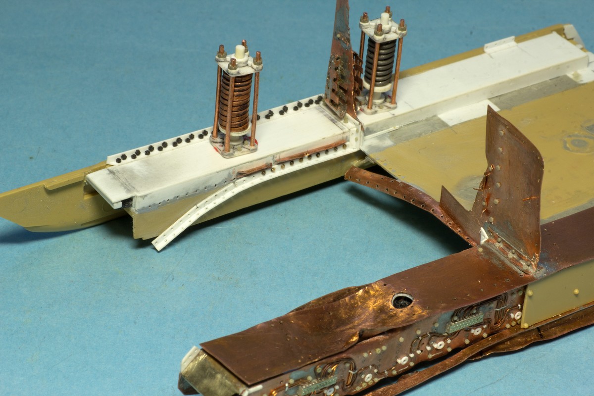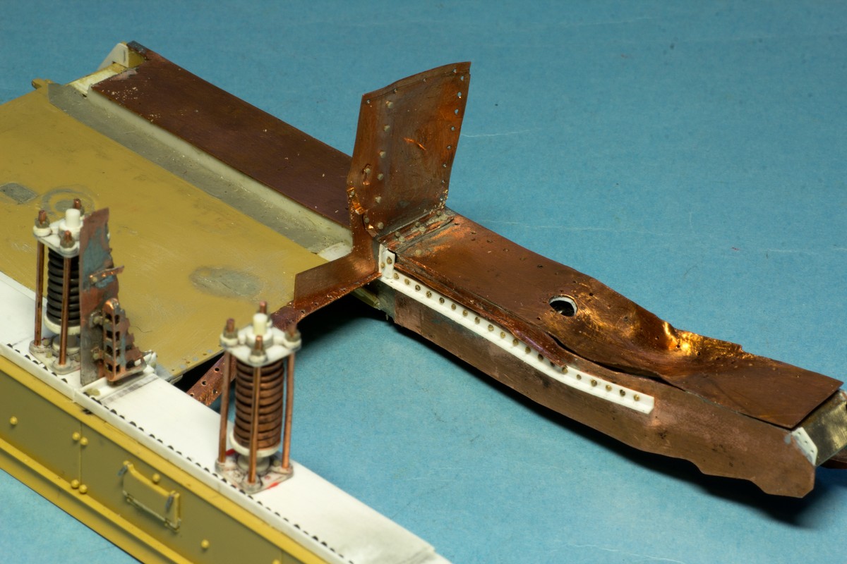 Практически сделал самую сложную деталь поделки - отрытую часть блока подвески со всеми ее трубочками, заклепками и болтиками. Даже не представляю что употребляли конструкторы B1, когда проектировали это и что про них говорили танкисты, которые эксплуатировали это.