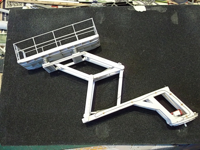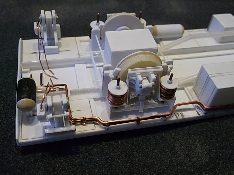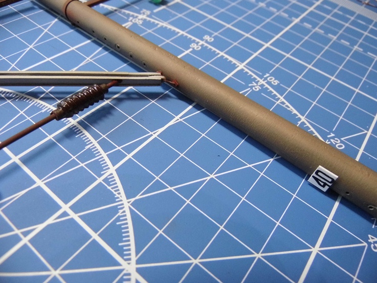Монтирую контактный провод. После пайки покрасил акрилом Model Air. С алюминиевыми проводами еще не занимался (блестят на заднем фоне).
