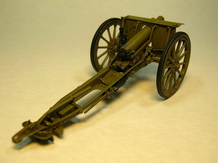 Лафетные щёки склеил из полистирола толщиной 0,3 мм. и уголков 1,5х1,5 мм. Усиления из уголков на наружних сторонах щёк появились уже в Русско-Японской войне (на опыте применения), а в Первой Мировой войне, это было уже сделано повсеместно.