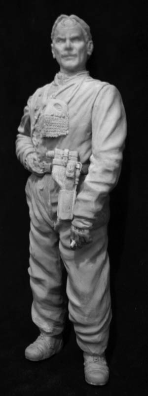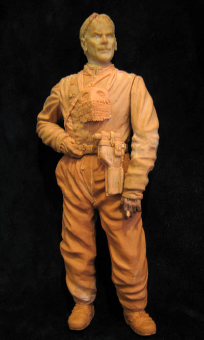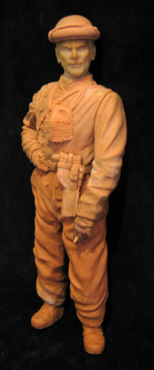 Так ноги и не доделаны вовсе, я даже не шкурил, просто делал набросок, мне интересно было посмотреть как целиком фигура смотрится. Я даже не стану доделывать их сейчас, всё равно только бюст уплывает к заказчику. А на эти ноги возможно потом другой танкист "сядет". Кстати маузер я увеличил согласно чертежам.