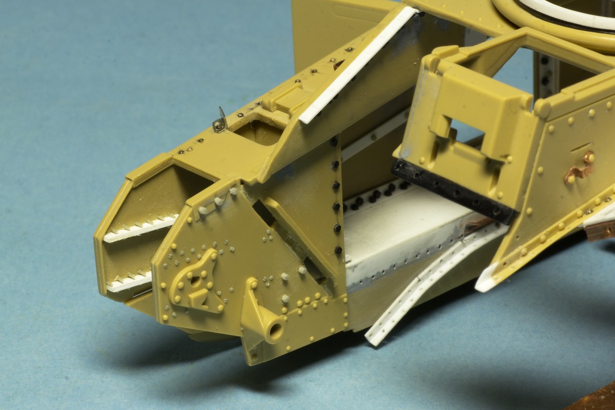 Немного обновлюсь. Долго возился с разными элементами экстерьера, с многочисленными (уже более двух сотен рассажено только снаружи) заклепками, болтиками, винтиками и гаечками
