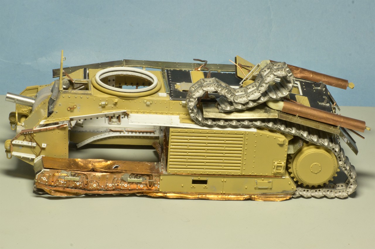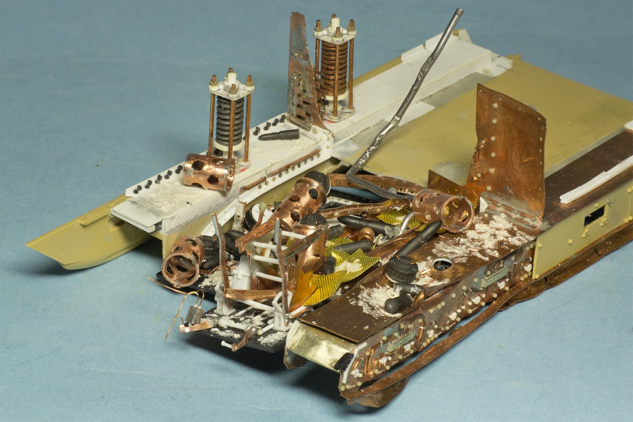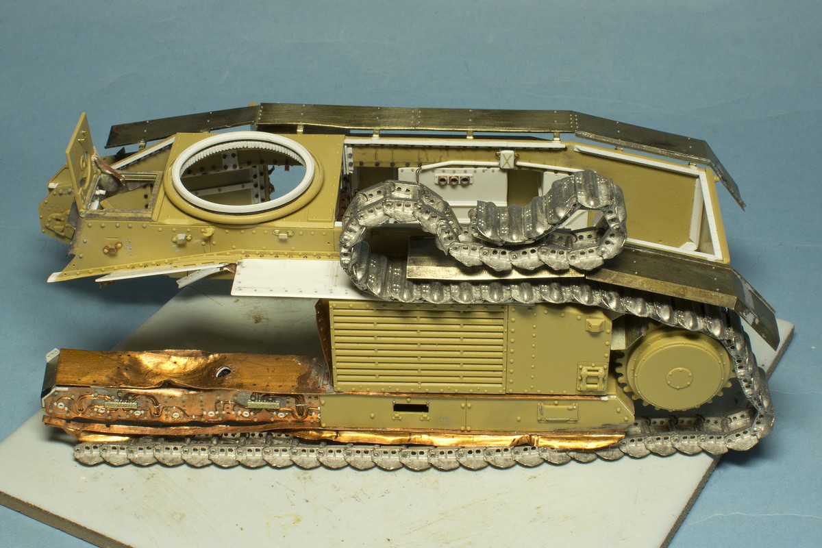 Продолжу. Из интерьера осталось сделать видимую из люков треть трансмиссии