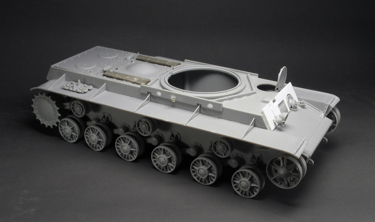 Отложив недалеко долгострой Т-34, я возобновил ещё более старый долгострой КВ-1 обр. 1942 г. Модель, конечно же, Трумпа, травление Абер. Так как люк отделения управления будет открыт, то я сделал зачатки интерьера.