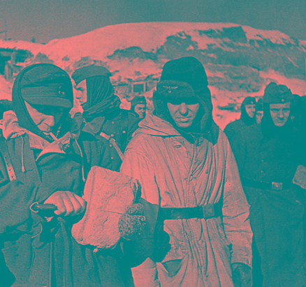 На втором - или все ушанки советские трофейные комсоставовские суконные на светлой овчине, или, по крайней мере, сшитые точно по нашему образцу - с круглым донцем.