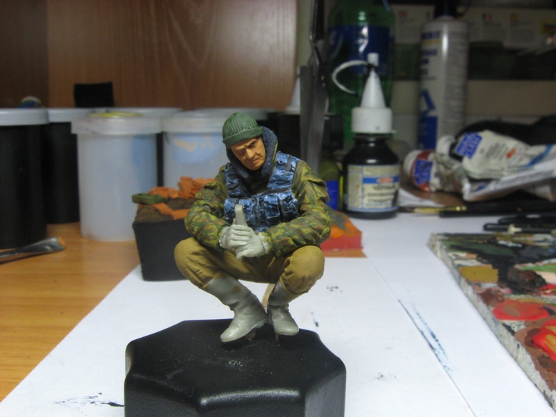 Talib, Emas, Yarik, Менелай,ребята,огромное спасибо!Я если честно сам не ожидал,что так получится.Краску намешивал из темперы,по большому куску ткани с этим камуфляжем.Это фигурка ОМОНовца.А те в чем только не ходили.Начиная от милицейских костюмов,заканчивая армейскими касками.Сегодня утром съездил за краской