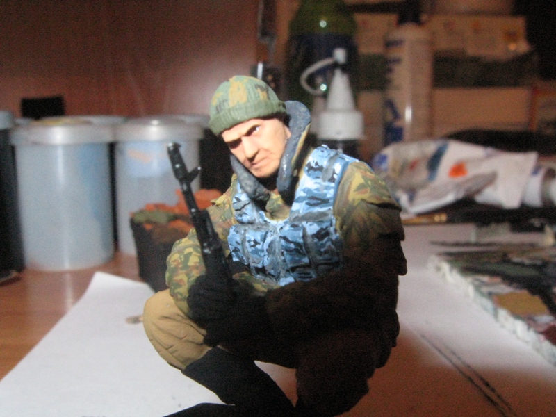 GISH, совет: шапку сделать однотонную, они больше распространены были, да и фигурка не такой пестрой будет. Камуфло на бушлате при близком рассмотрении оказывается с небольшим косяком: обычно пятна вытянуты горизонтально, у тебя же вертикально. Но смотрится неплохо, особенно издалека.