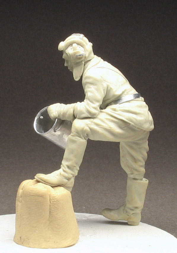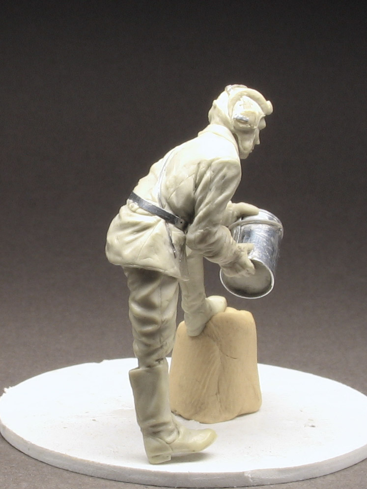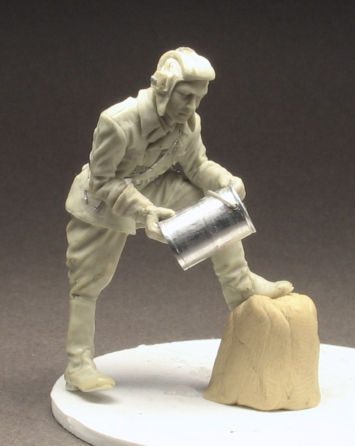 Из старенького. Танкист заправляющий Т-34. Фигурка сильно страрая - сделана, на сколько я помню, осенью 2008 г. По разным причинам её раньше не показывал. Хоть работа и старая и с огрехами, но всё же по-своему очаровательная.