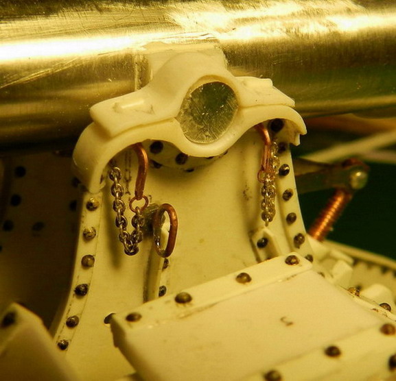 Из полистирола вырезал цапфенные ладыги (накладки), а из меди чеки к болтам ладыг. Примерил их по месту.
