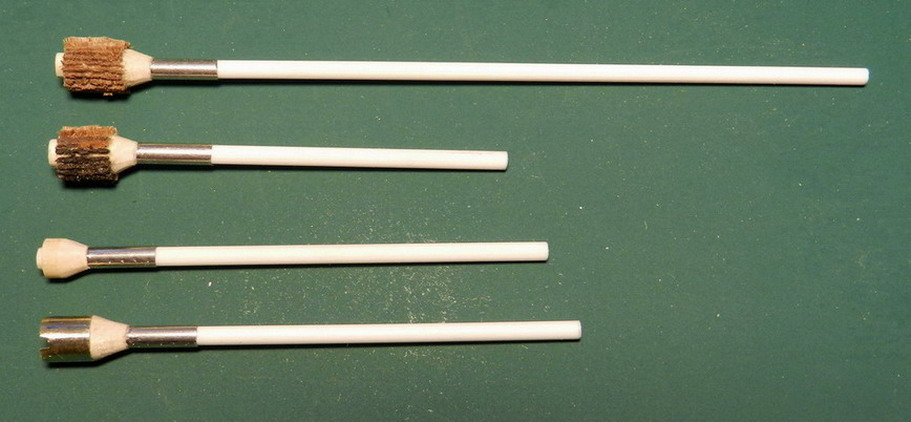 Начал работу над принадлежностями для орудия. Сделал банники для ствола и каморы, прибойник и разрядник.