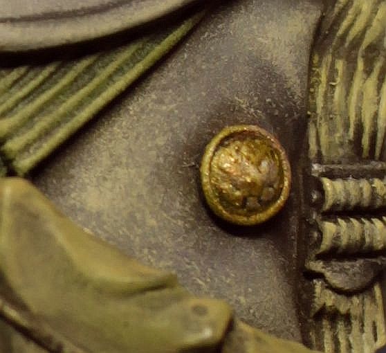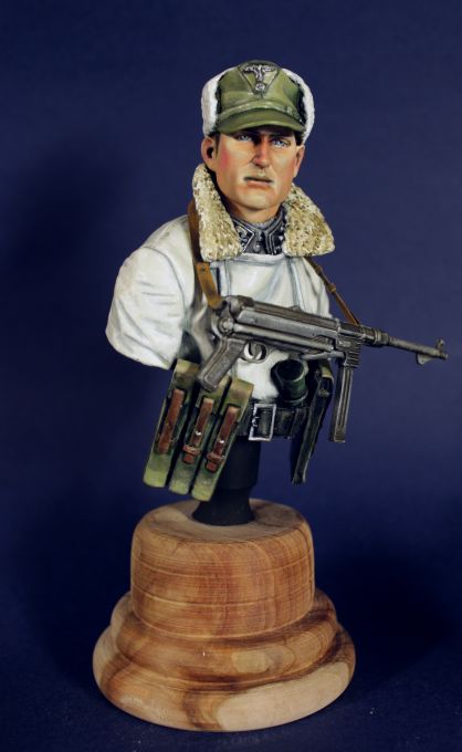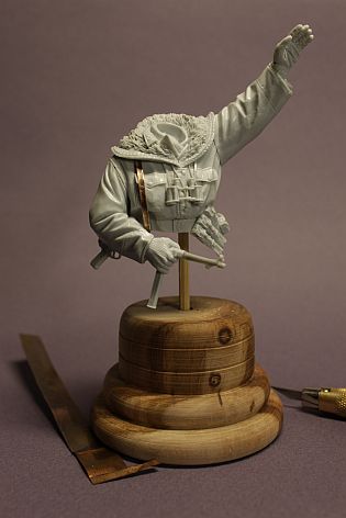 "Чтобы не заказывать бюсты,решили оттереть старый.Этот немец был раскрашен в декабре 2009г.Темпера ПВА,эмаль-металлики.Фотоссесия на память".