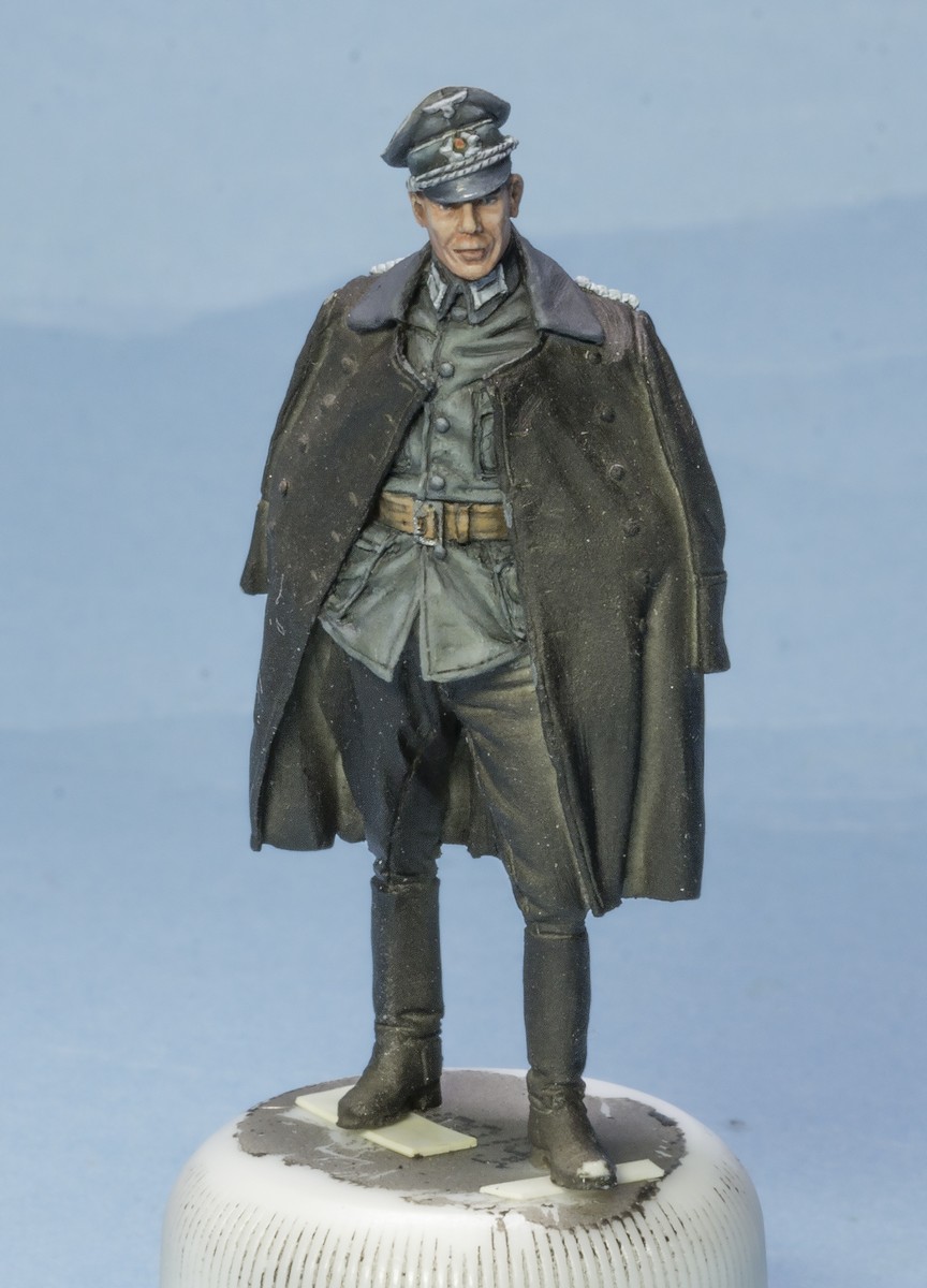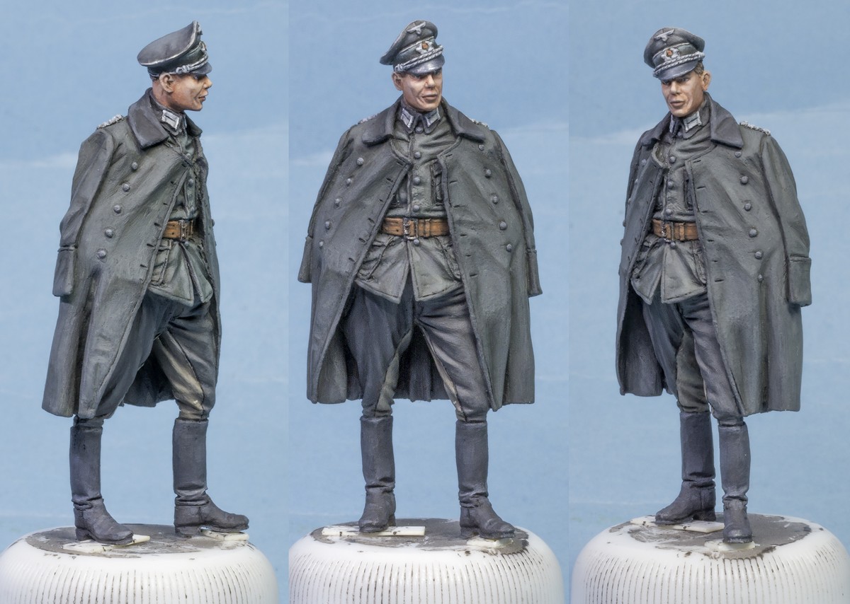 saleh Wrote:В рамках отдыха от модели танка начал раскрашивать других обитателей подставки. Вот на треть готовый герр майор. Готовы голова с фуражкой. Китель в процессе, остальное в грунте