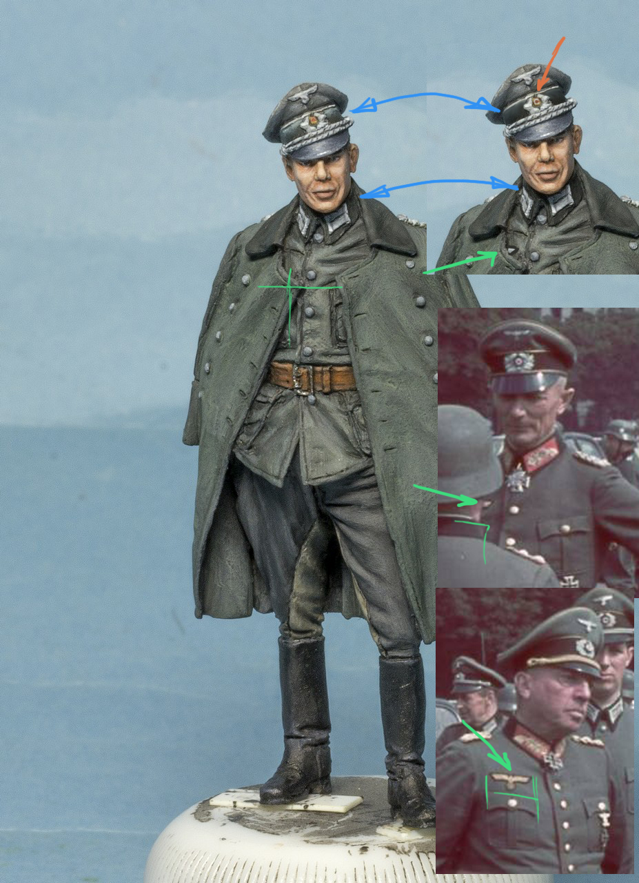 2)На мой взгляд нагрудный орел должен краем выглядывать из под шинели. Нарисовать его конечно будет сложно, но если получится, думаю будет хорошей деталью.