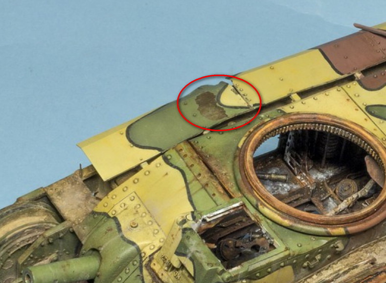 Из плохого - в очередной раз отслоился грунт вместе с краской. на первой секции правой полки. Это все из-за старой грунтовки (серая Тамия). Это отслаивание преследует меня всю покраску