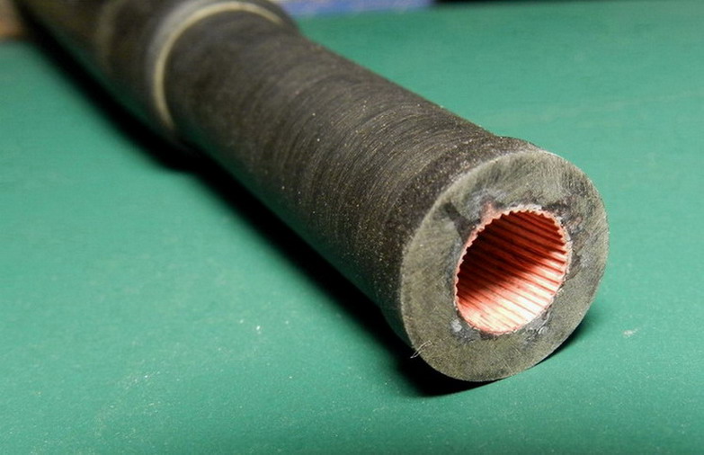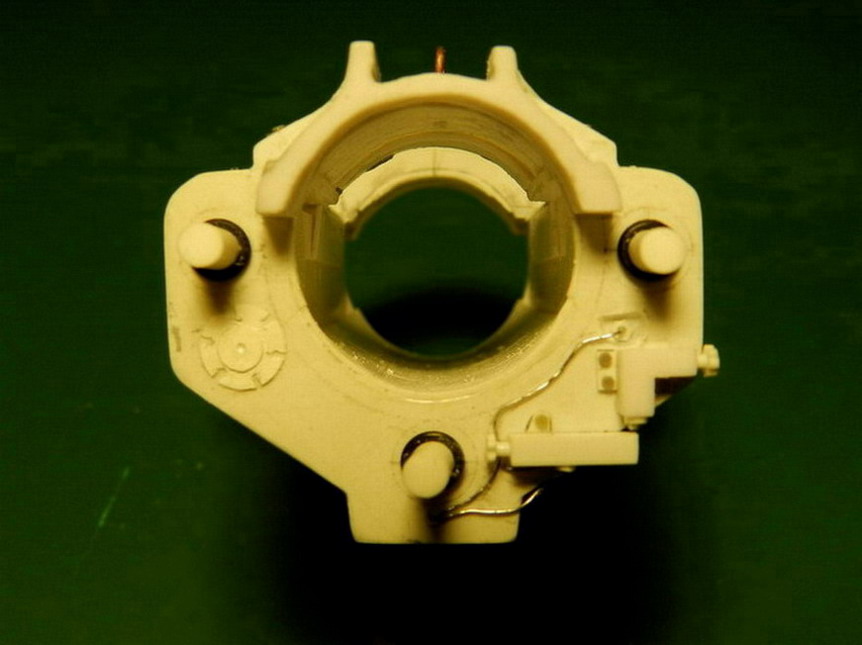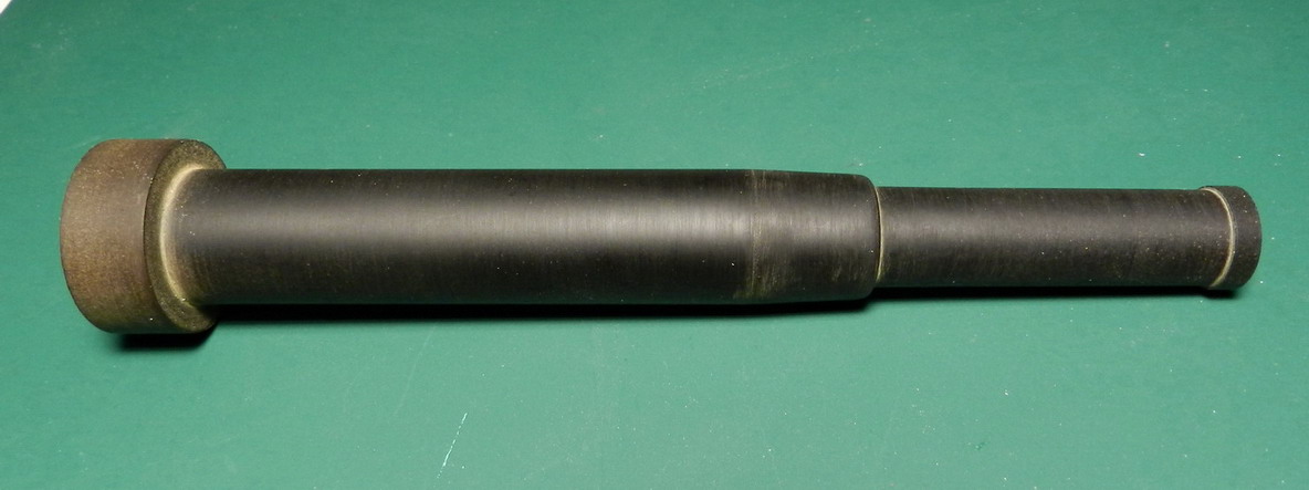 Выточил ствол из эбонита. Решил помучиться с нарезами. Попытка сделать травлёнку провалилсаь. Слишком мелке нарезы. Сделал по своей технологиии. На полистироле толщиной 0,13 мм. разметил нарезы, нарел из него тончайшей лапши и клеил, клеил, клеил. На супержидкий тамиевский клей.Потом зачистил нарезы надфилем и наждачной бумагой, прочистил жёсткой кистью и промазал 646 разбавителем, чтобы оплавить мелкие шероховатости.Отрезал кусочек длиной 1 см. (больше сложно вклеивать) и вставил в ствол.Но количество нарезов 72 шт. всё равно сделать не смог.Около 40 шт. поучилось.