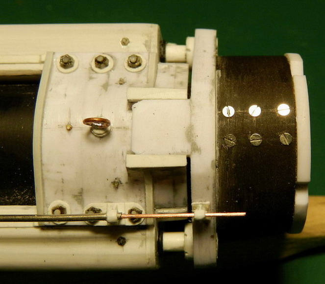 Установил люльку на ствол. Сделал из трубочки и проволоки указатель отката. В месте соединения люльки с казёнником вставил полоз-фиксатор.