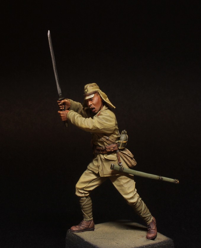 На рабочем столе у меня уже есть небольшие наработки, но поделюсь пока фотками только одной фигурки, другие чуть позже. Первый японец на моей полке и первая фигура от Minisoldiers. Деталировка, складочки - отлично. А роспись судить Вам, я старался..