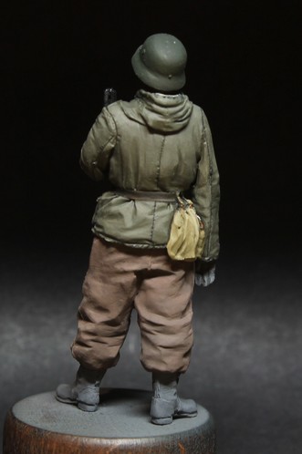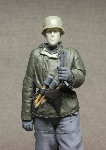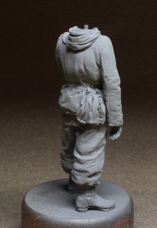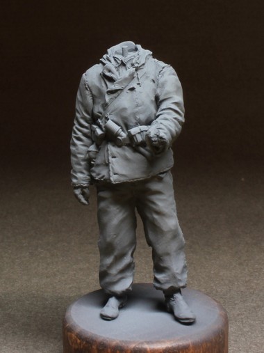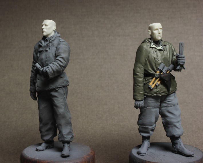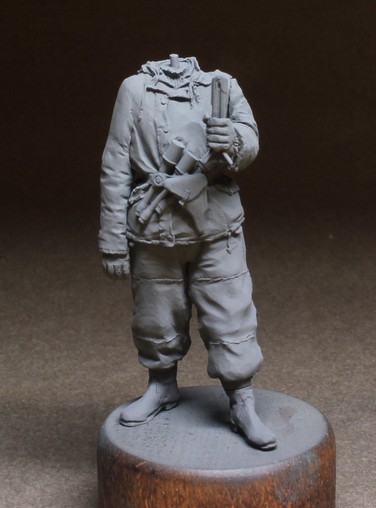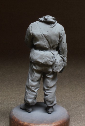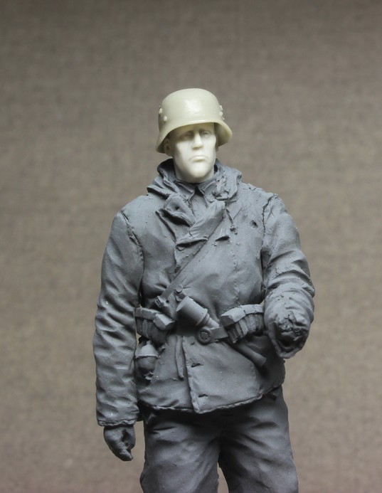 Грунтовка как обычно Тамия. Проработка складок, швы - все на уровне. Саша скрупулезно относится к лепке униформы, такие мелочи как пуговицы на рукавах для крепления опознавательных лент и прочие "элементики" радуют.