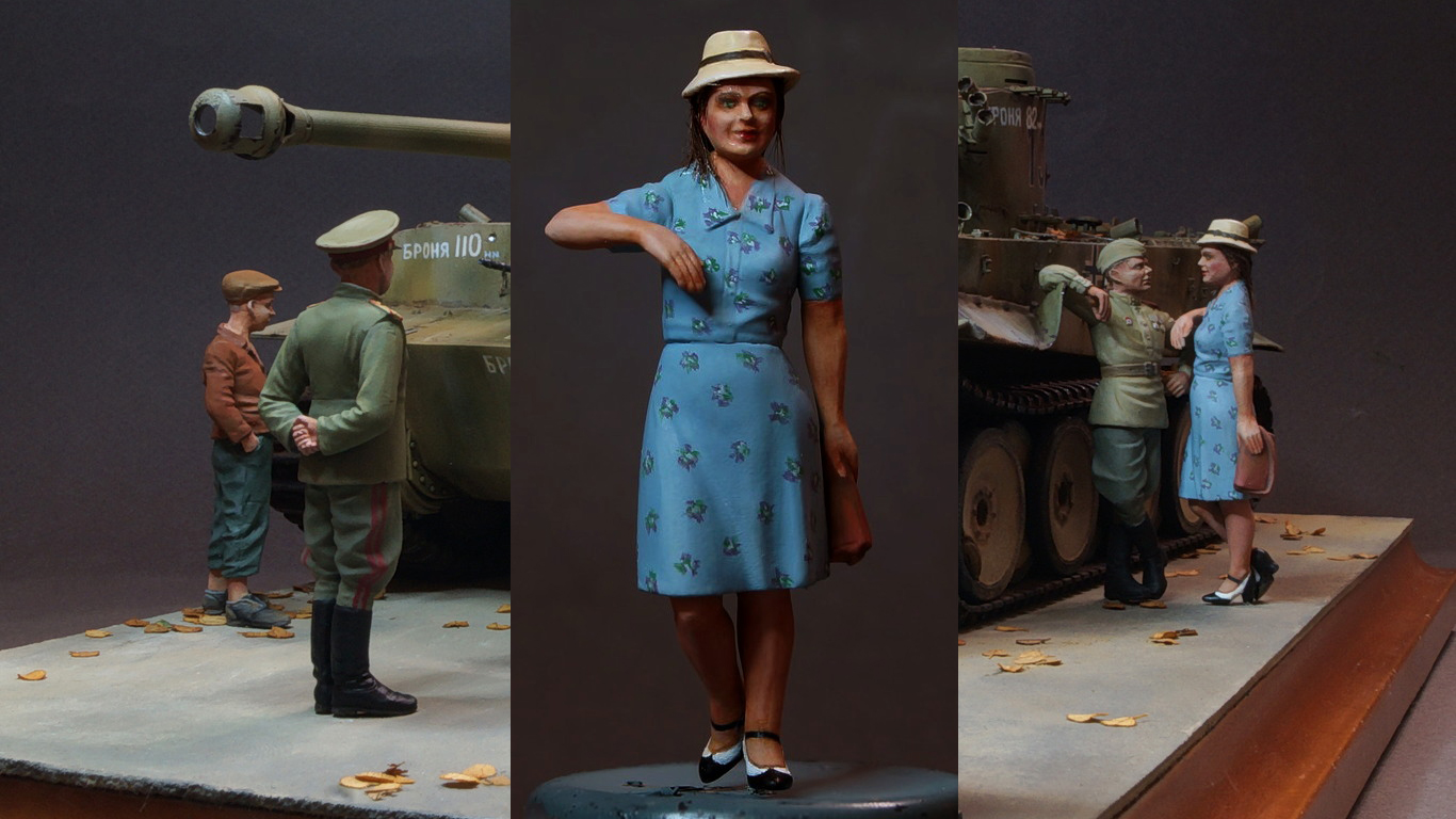 Один только вопрос - обо что так мощно оперлась рукой дама, стоя на одной ноге? Не на танк же?