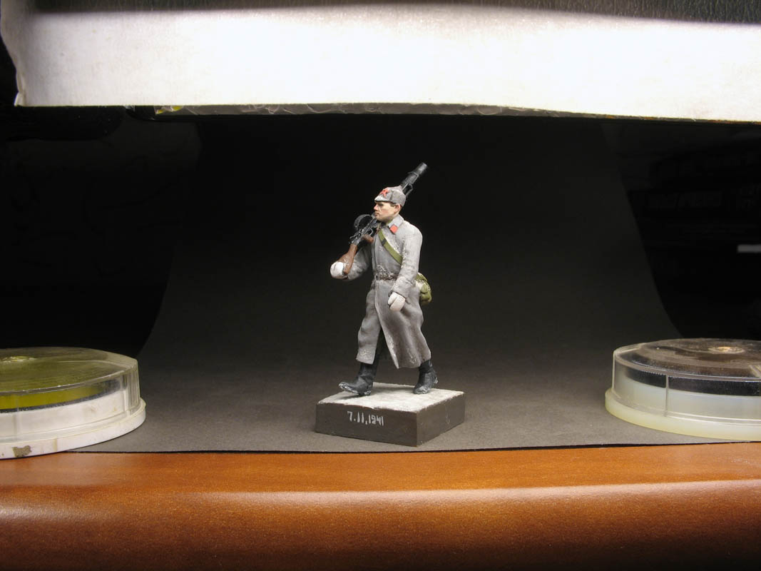 Artyrony, самому не всё в этой фигурки нравится, долго делал, переделывал, со многим экспериментировал, можно сказать она опытная. Малый ремень может быть просто затянут и поэтому так вдавился в шинель. Валенки были разные, просмотрел кучу фото и пришел к выводу что были как монструозные огромные (какие сделал первоначально, но я их порушил), так и вполне по ноге.