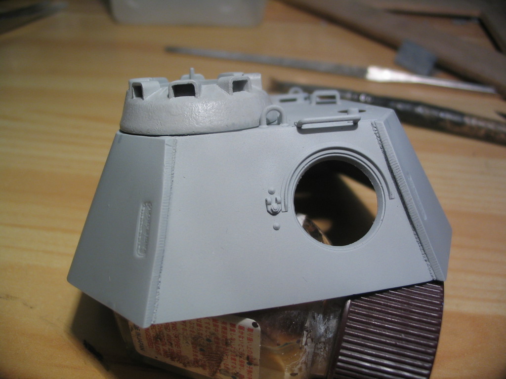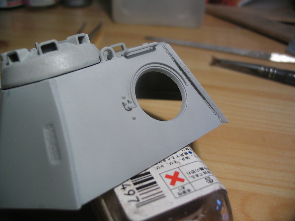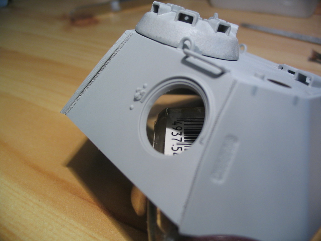 На самом деле это первая деталь на которой я имитировал литьё. Я же раньше собирал только Тамию, а там фактура литья и так великолепна. Пробовал по разному. Сначала попробовал жидкой шпаклевкой, не понравилось, затем задул тамиевской грунтовкой и пока она не высохла практически сразу, отложив аэрограф обмакнул в 646 растворитель жёсткую постриженную кисть и начал тыкать. Получилось грубовато и я решил сгладить не шкуркой а мягкой кистью обмакнув в 646 растворитель начал аккуратненько приглаживать и получилось достаточно правдоподобно, даже и не знаю смогу ли повторить снова..