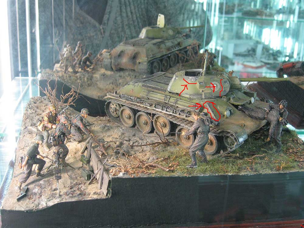 Выкладываю вид на исходники третьей диорамы с МИГовской разбитой Т-34/76, а также финальные результаты с фотоотчета с выставки в "Технике Молодежи".