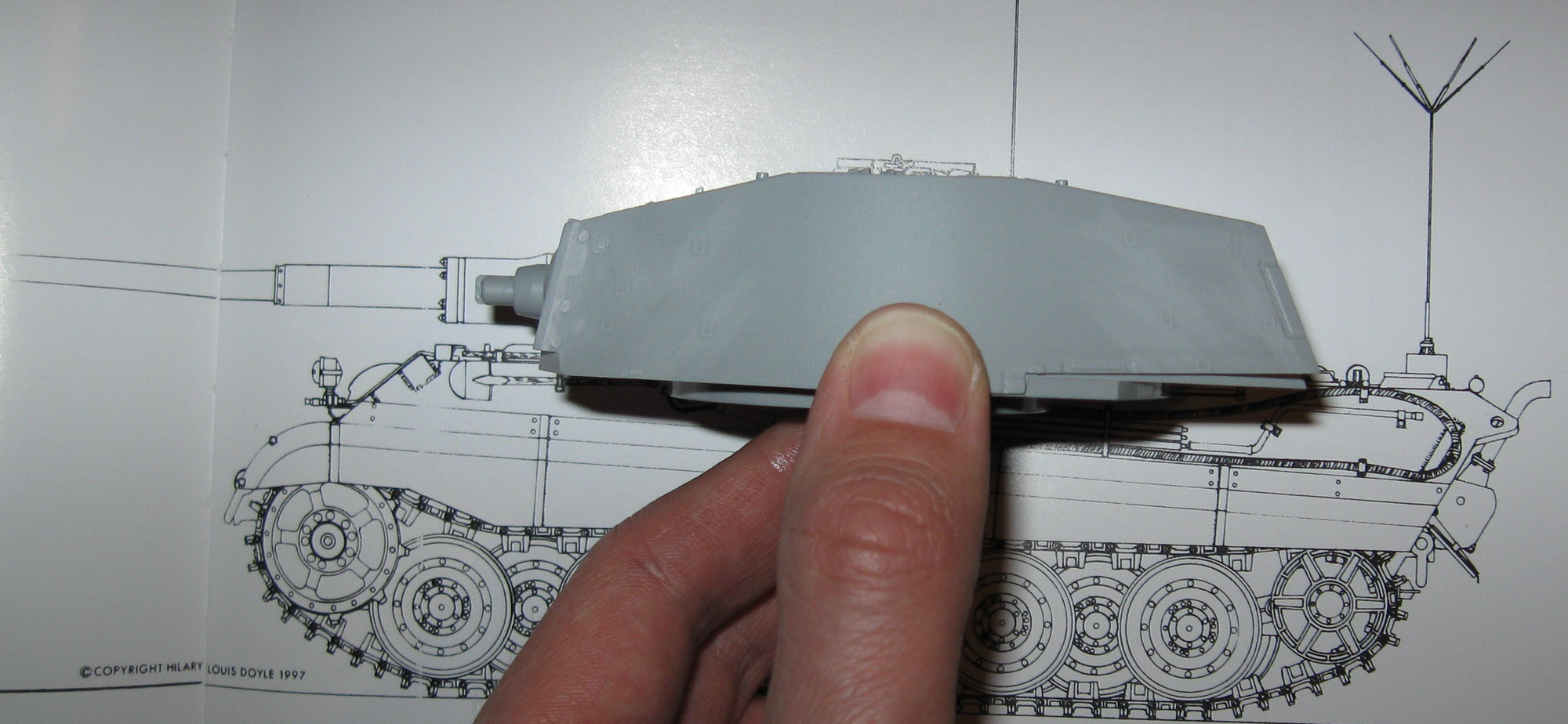 Не знаю,может мне кажется, но башня от Tamiya все же не идиально входит в чертежи на ваших фотографиях.Широковата все же в передней части и узковата в задней.К тому же переход от передней к задней сдвинут вперед.А вот с Dragon по моему все в порядке.