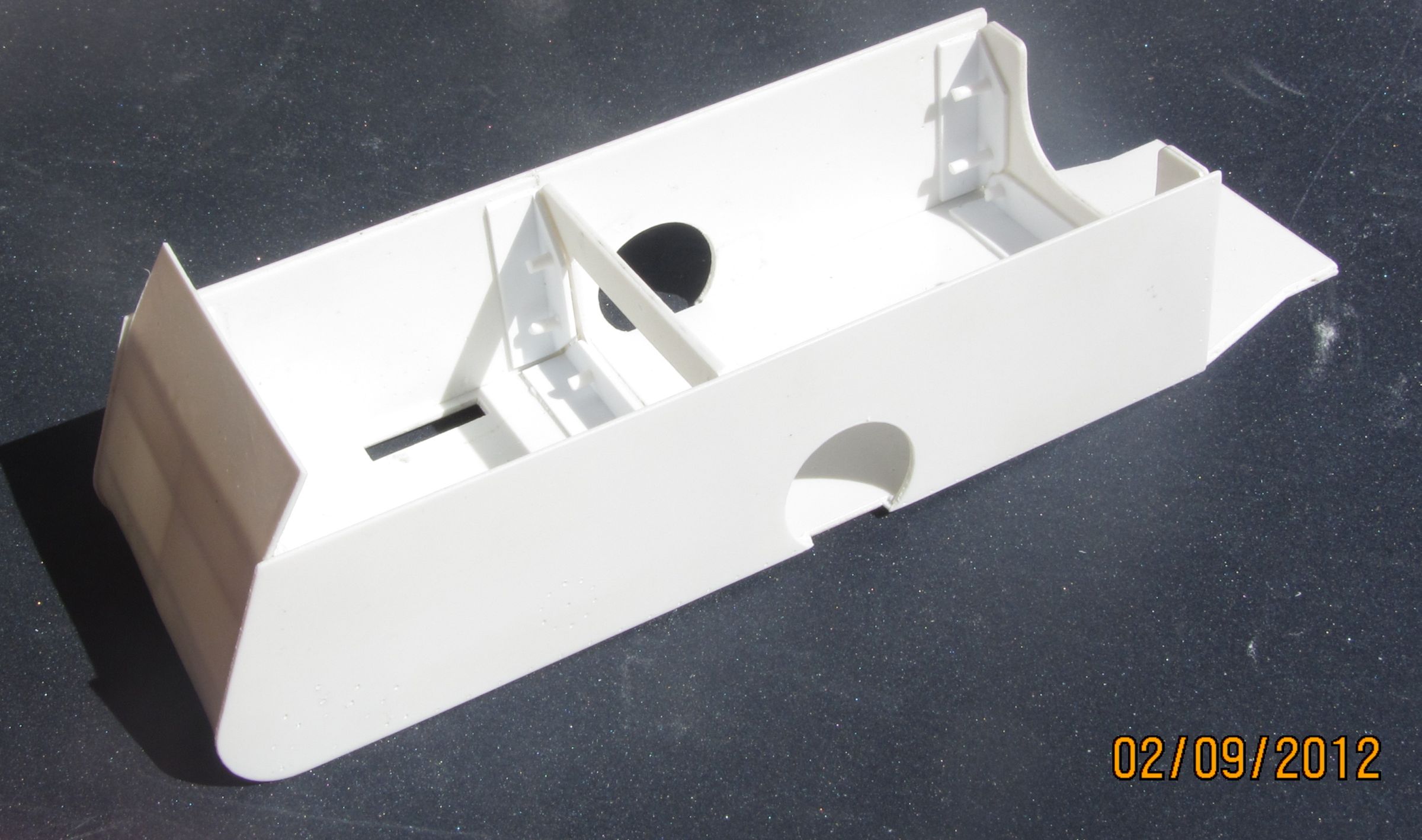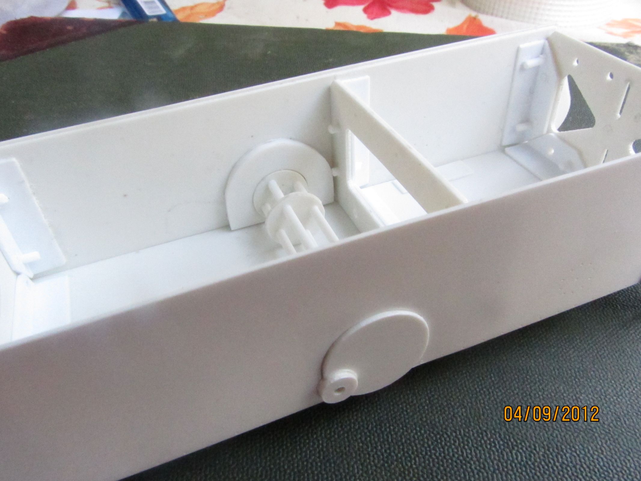 Я сделал лекалу и промерил ей. Приёмники задних колёс приклеены к бортам.