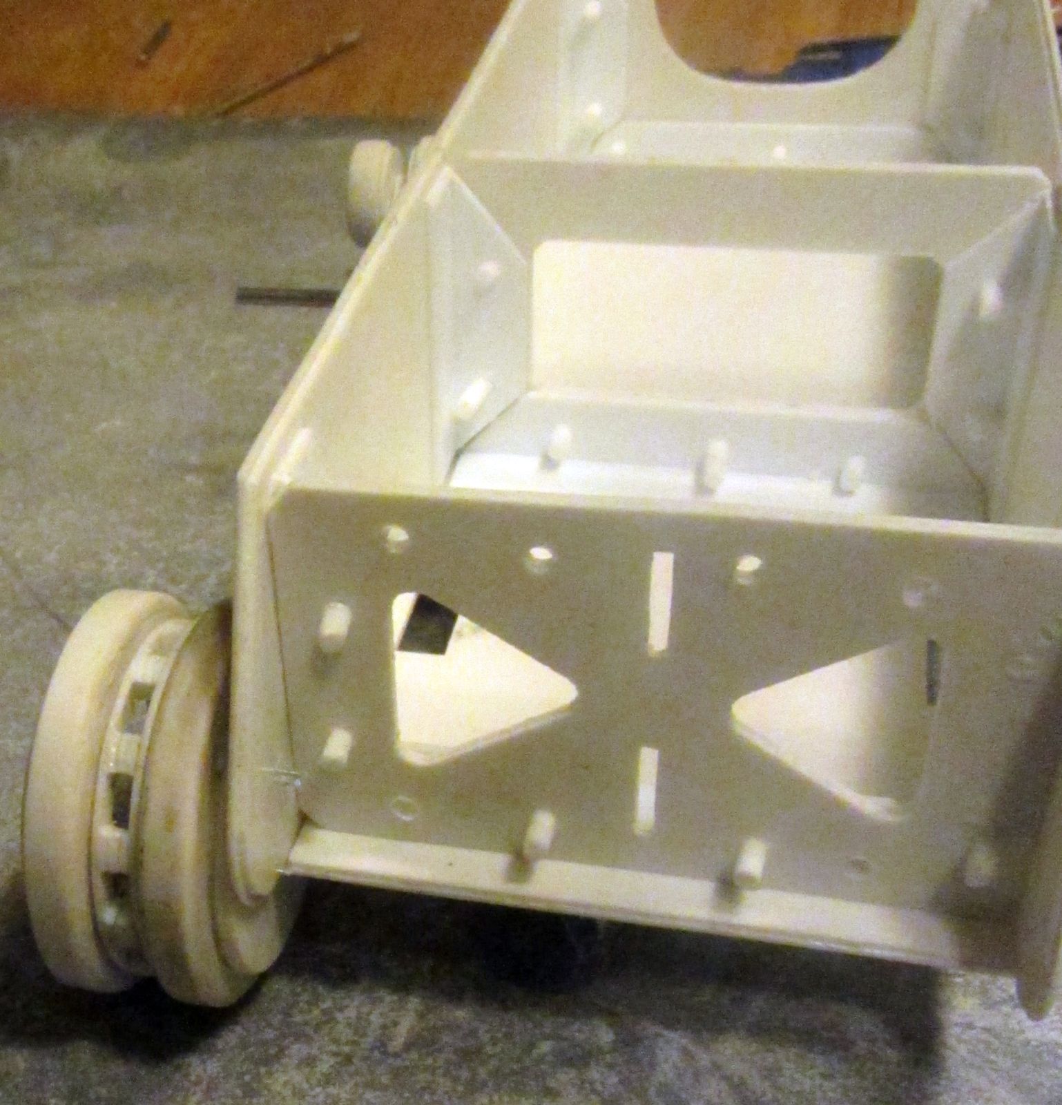 Когда я делал колёса то особо не задумывался как они были установлены на прототипе. Поэтому совершил ошибку. Это мне сложно описать словами, вечером выложу снимки и схему как оно должно быть. Практически это не драма, надо сточить полмиллиметра с ровной поверхности и наклеить новый слой.