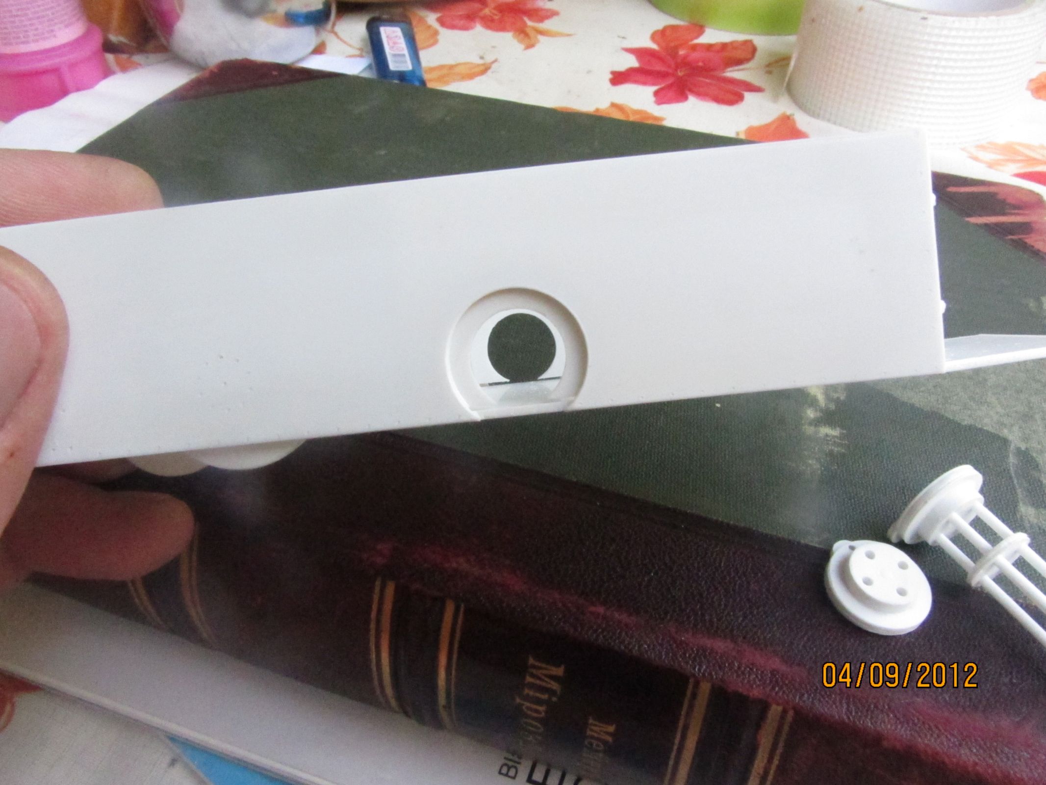Сильно бережет время и невры полистироловый прутик диаметром 1 мм (от Evergreen). Из него режутся шайбы для концов шарниров.
