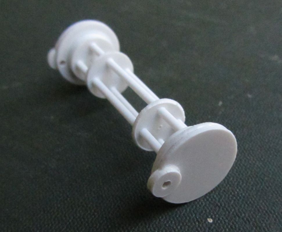 Гусеницей я решил занятся в конце. Подсобираю пока куски для монтажа танка, а остальное (требует принятия ряда финальных решений) потом буду думать. Уж больно охота иметь рабочие траки. Попробовал сделать шарниры из полистиролового прутика в 1 мм. Дырочку просверлить ещё можно, а вот красиво приклеить сложнее - клей разъедает эти деталюшки.