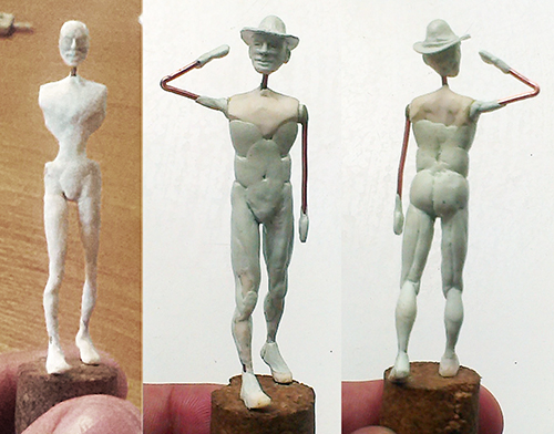Добрый вечер. Я внимательно просмотрел процесс изготовления (лепки)фигуры казака и фигурку австрийца и попробую дать несколько советов которые в дальнейшем помогут избежать тех ошибок которые прослеживаются как в первой работе , так и во второй. Для того , чтобы хорошо слепить фигурку ее лучше всего для начала прорисовать эскизно , не затрагивая т.с матчасти - только фигура , расположение на виньетке , положение рук , ног и головы.Когда эскиз работы готов необходимо решить ,что для вас первично в работе - идея или сам процесс . Если это идея то можно прекрасно обойтись глубокой конверсией уже готовых фигур(пластиковых , смоляных или белого металла), благо налеплено и растиражировано их великое множество ( кстати процесс конверсии фигурок благотворно скажется и на навыках авторской лепки)При конверсии можно применить все советы которые дали коллеги по хобби выше.Кстати оружие тоже можно переделывать под интересующую модель. Когда конверсируете фигурку слепленную профессиональным скульптором вы вольно или невольно просматриваете каждую складку , расположение рук и ног , мимику лица и делаете для себя определенные выводы в плане переделки этой фигурки и лепки вообще.На Диораме практически все прошли этот путь , и честно говоря я бы не назвал его скучным.