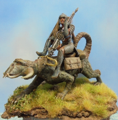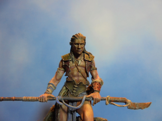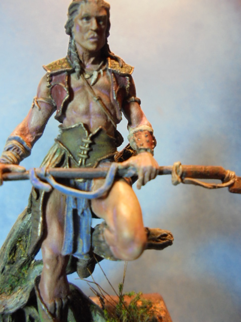 Фигурку красил разными акриловыми красками,в основном Валеджио.На верхнем фото есть неплохой набор Лайф колор для покраски разных веревок,ленточек,тряпочек.Краски мне нравятся по подбору цветов,по консистенции(можно красить не разбавляя).Металлики применил восковые от А.К.После акрила работал масляными красками"Мастер класс"с разбавителем №4(с ним краски быстрее сохнут)в основном по телесному.Эта марка нравится ценой и большой палитрой.После закрепления фигурки на подставке, посыпал разных пигментов на свой вкус.И в конце, как обычно, прокрасил мелкие камушки светлыми оттенками.Выложу еще пару фото воина и пару переснятой с новой лампой Амазонки.Всем творческих успехов!