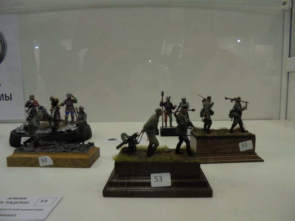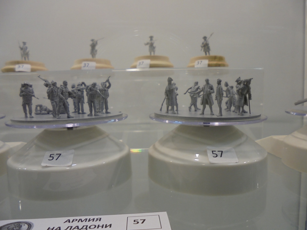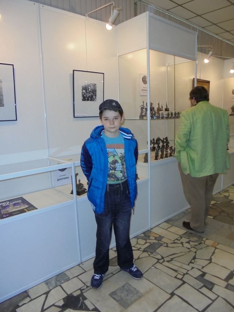 Добрый вечер форумчане!Сегодня не о фигурках,работа идет и близится к концу.Сегодня всех с праздником-днем города!(у кого какой).Съездили сегодня вместе с сыном на выставку"Армия на ладони".Пытаюсь с ранних лет привить вкус к настоящему искусству.Пока правда побеждает"ГТА".Но глаза у парня загорелись,и это радует.Получили огромное удовольствие и массу впечатлений.Сам пять лет собирался,но все какие-то причины и накладки,а тут все срослось.