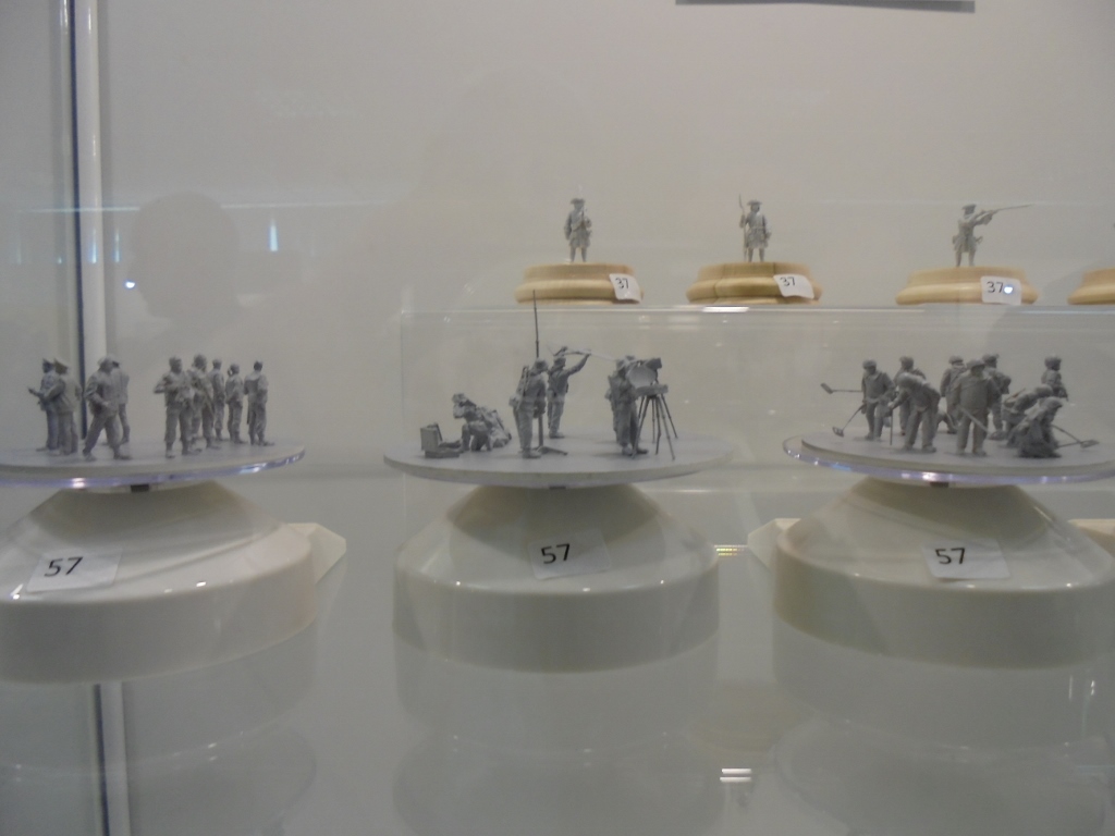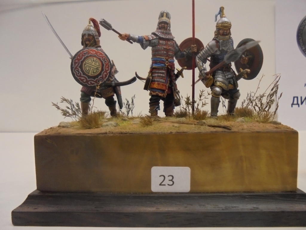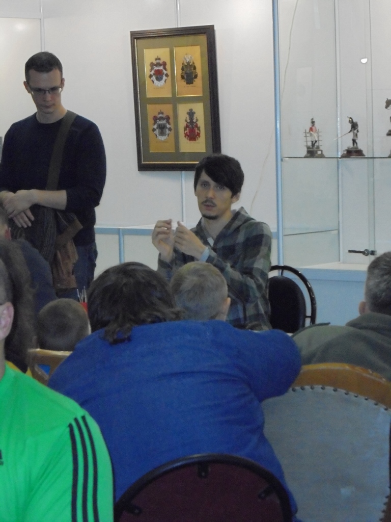 Сама выставка конечно маловата,нужно было разбавить небольшими диорамками с техникой и фигурами.Да и расставлены фигурки как-то наспех неправильно-неудобно рассматривать и фотографировать.Хорошие работы почему-то на заднем плане,а некоторые витрины полупустые.Но это уже вопросы к организаторам.Порадовал и повеселил мастер- класс с Анаром.Первый раз увидел его в живую,нормальный,обычный парень.Спокойно отвечал на все дурацкие вопросы.Люди ожидали,правда,чуда-как за 40 минут научиться профессионально красить фигуры.Интересно было наблюдать за реакцией,когда Анар сказал,что на роспись лица фигурки тратит три дня с 9 до 18.Причем одним акрилом.Да,и он просто сразил наповал поклонников тамперы-она оказывается не пригодна для росписи фигур непрофессионалами.