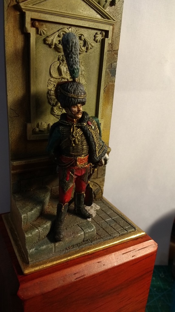 Когда вчера стал пылить сапоги, заметил, что я погнул саблю, и после выпрямления поставить фигуру так как была нереально. Пришлось дырку под винт зашпаклевать, и просверлить новую, вечером сфоткаю. По новому получилось лучше - фигура стоит "надежнее", и опирается как на носки, так и на каблуки...