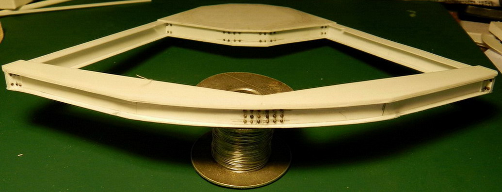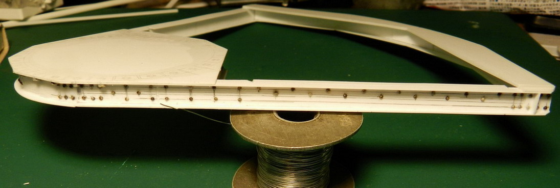 dpl,Дмитрий, да всё очень просто. Проволока не сточена , а прокована на концах и обточена. Хочу их снять и в плоских концах дырочки просверлить. Чтобы понадёжней вставить на штифты. А то уже один раз зацепил и отлетел. Поленился немного.Обычно на таких крупных поручнях всегда так делаю.Кстати, а на Ваших поручнях есь круглые шарики, через которые они проходят?. Что-то я уже не помню.