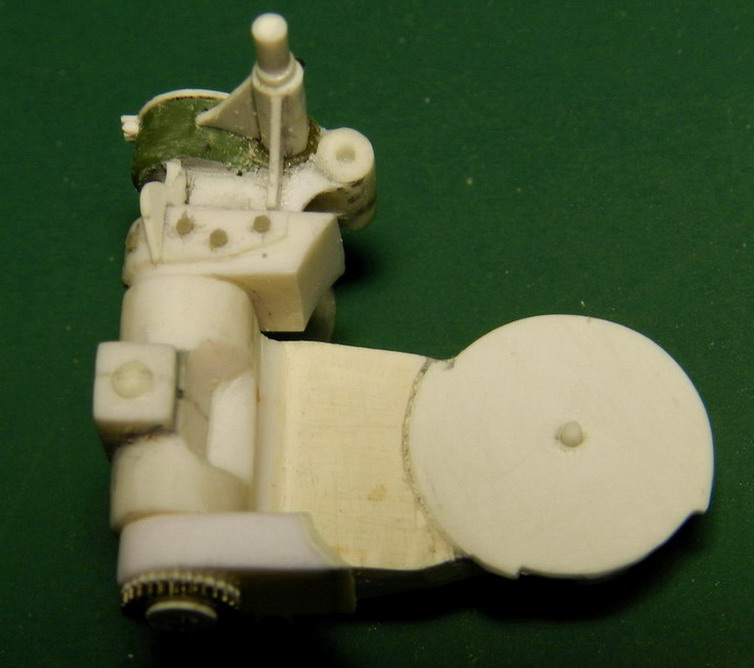 Сделал заднюю обойму на ствол. Болты крепления довольно большие. Пришлось нарисовать и распечатать на принтере головки болтов и гайки, перевести на полистирол и вырезать. Занимательный процесс.