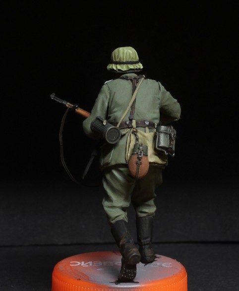 Спасибо всем за отзывы! Очередная реинкарнация солдата вермахта от "Танк". Набираю потихоньку "команду" атакующих немцев на 42 год. Отмыл в "кроте" фигурку десятилетней давности, чуть доработал, добавил недостающие поддерживающие ремни Y портупеи из фольги, полукольца тонкая проволока + поддерживающий ремешок противогазного бачка. Петлицы декали от "Альянс".