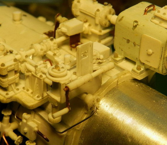 Рассказываю об изготовлении вентиля. Всё очень просто. Из полистирола толщиной 0,35 мм. пробойником вырубаю кругляш необходимого диаметра. Размечю отверстия в центре и по краям. Бором толщиной 0,2 мм. просверливаю отверстия. Затем резцом прорезаю края создавая полудуги. Немного прохожу тонкой наждачной бумагой и разбавителем №646 кистью расплавляю махры. Клею на ось и всё.